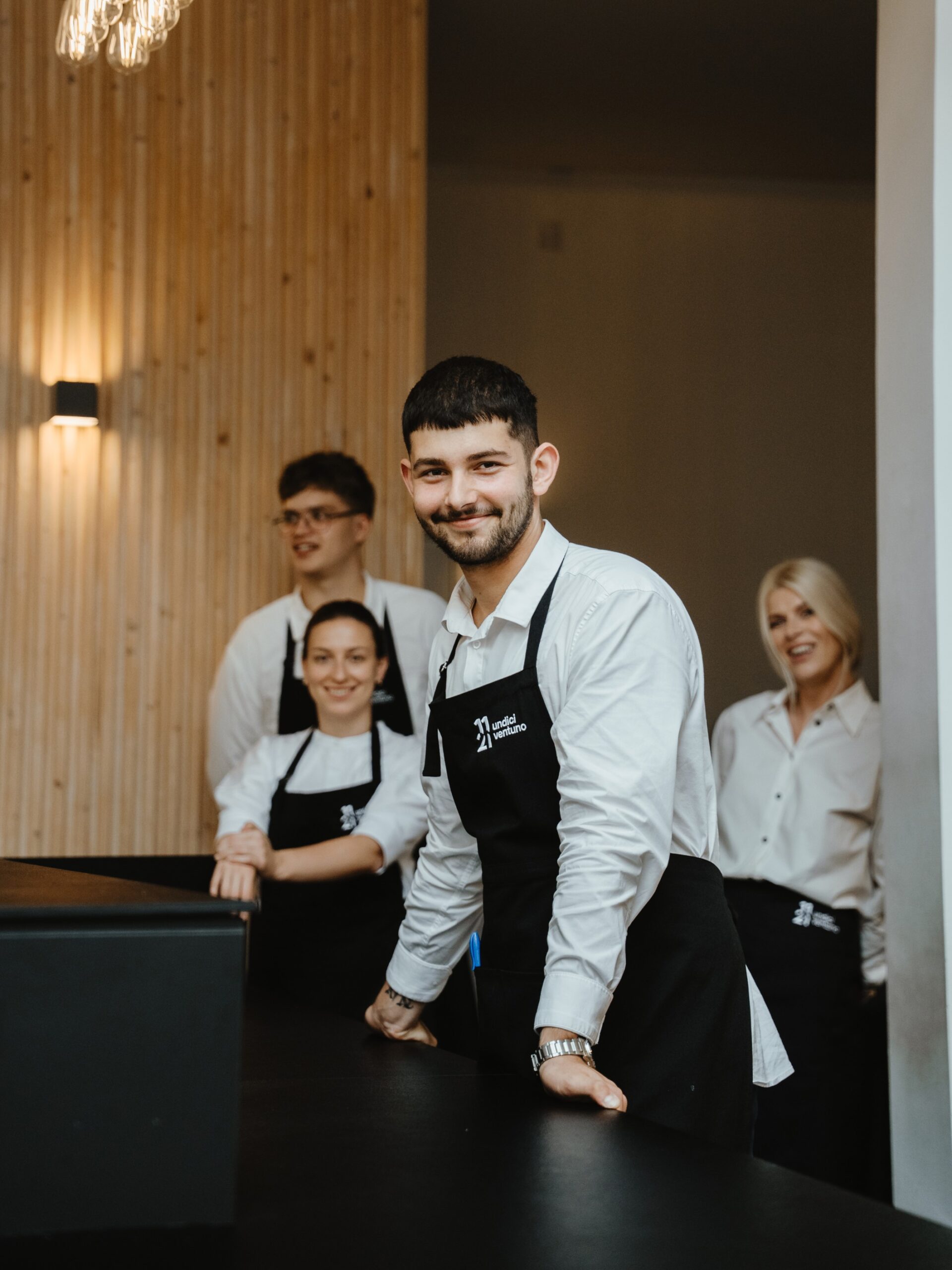 Freshly hand-chopped biodynamic beef, served with layered crispy millefoglie potatoes. 18 €